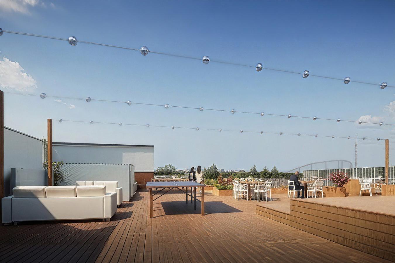 В рамках проекта TPI Company планирует создать комфортную зеленую зону вокруг центра, дополненную новыми подъездами и парковочными местами. На крыше здания появятся дополнительные пространства для отдыха и работы резидентов, что позволит наслаждаться видами на ВДНХ и Москва-Сити. Зоны будут оборудованы современной мебелью и зелеными насаждениями, создавая атмосферу для продуктивной работы отдыха и деловых встреч.