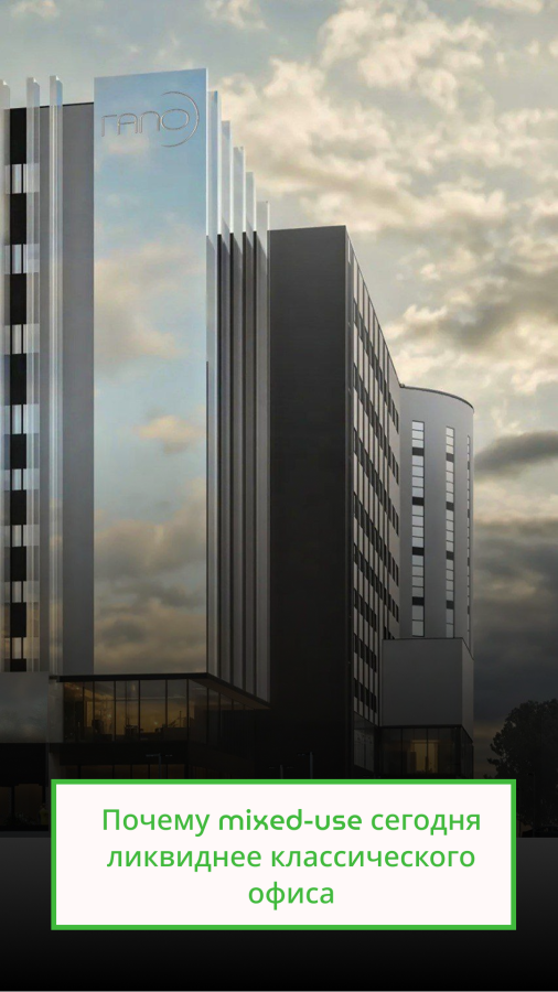 Сегодня бизнесу нужны не просто квадратные метры, а пространство, которое решает сразу несколько задач: офис, хранение, логистику и сервисную инфраструктуру. Поэтому mixed-use сегодня выглядит сильнее классического офиса.